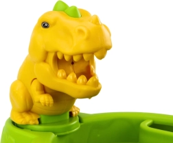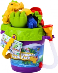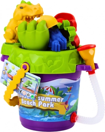 Descoperiți setul complet de nisip cu tematică de dinozauri, care îi va ține pe copii ocupați ore întregi. Dușul integrat al găletușei și morișca cu pâlnie transformă joaca obișnuită cu apă și nisip în mici experimente – copiii pot uda, urmări curgerea și observa cum apa sau nisipul trec prin morișcă. Capacul găletușei funcționează ca o sită pentru separarea nisipului de pietricele sau scoici.
