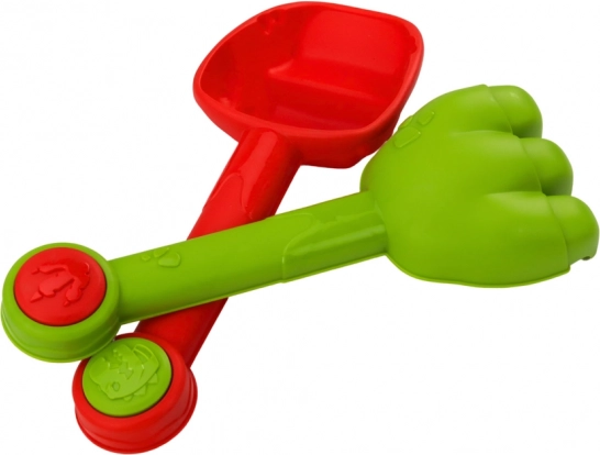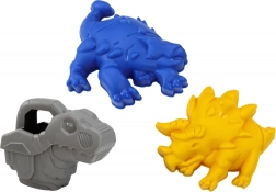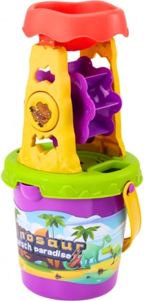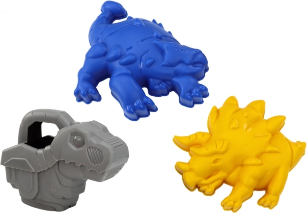 Sunt incluse, de asemenea, o lopățică și o greblă pentru modelare și formare, o stropitoare în formă de dinozaur pentru jocuri cu apă și două forme cu dinozauri (de ex. triceratops), care stimulează imaginația și motricitatea fină. Setul este potrivit pentru plajă, malul apei și groapa cu nisip și respectă normele de siguranță.
