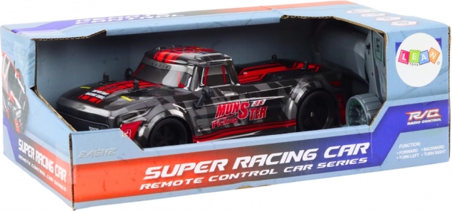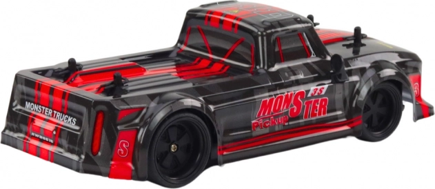 RC pick‑up la scară 1:18 este o alegere excelentă pentru începători și micii pasionați de curse. Datorită anvelopelor din cauciuc cu aderență excelentă, se descurcă pe suprafețe netede și ușor denivelate, rămânând stabil chiar și la viteze mai mari. Finisajul elegant negru cu accente roșii subliniază caracterul sport al modelului.
