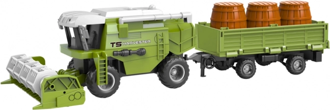 Un combine RC distractiv și realist, în culoare verde, îi va încânta pe micii și marii fani ai tehnicii agricole. Oferă manevrabilitate completă înainte/înapoi și la stânga/dreapta, efecte luminoase pentru un plus de realism și roți din cauciuc mari pentru aderență excelentă acasă și în aer liber. Include remorcă cu trei butoaie și două accesorii de cosit interschimbabile pentru un joc variat.