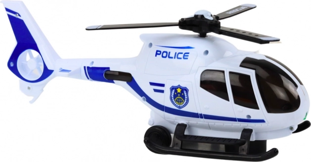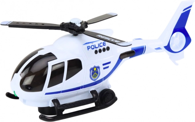 Acest elicopter de poliție din plastic, în culori atractive, este ideal pentru micii iubitori de acțiune și misiuni de salvare. Datorită rotorului care se învârte și luminează, efectelor muzicale și sonore și mecanismului inteligent care își schimbă direcția la impactul cu un obstacol, oferă ore îndelungate de distracție și stimulează jocul creativ.