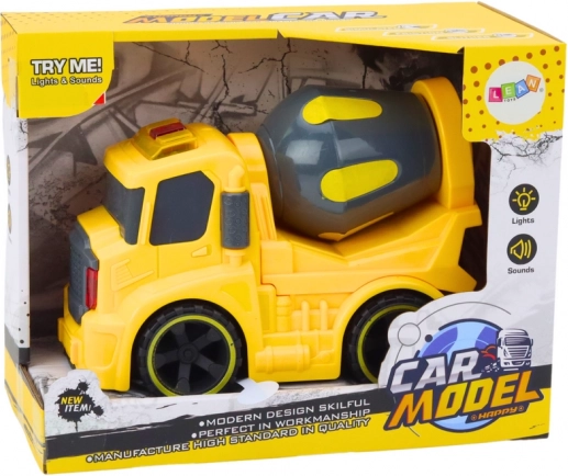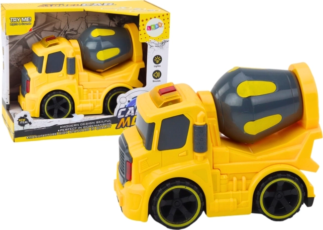 Autobetonieră galbenă amuzantă pentru copii de la 3 ani, cu tambur rotativ, efecte luminoase și sonore și mecanism cu recul (pull-back) ușor de folosit. Datorită construcției rezistente și designului realist, stimulează jocul creativ pe șantier și dezvoltă imaginația copiilor.