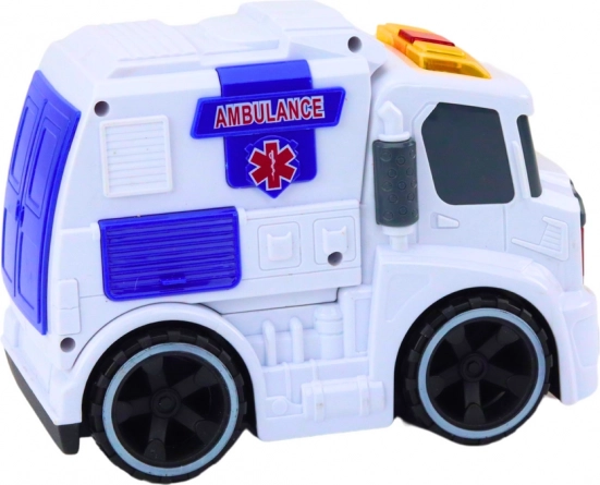 Ambulanța redă sunete de sirenă și motor și clipește ca un vehicul de salvare real – perfect pentru jocuri pline de acțiune.