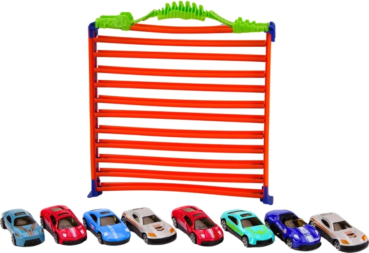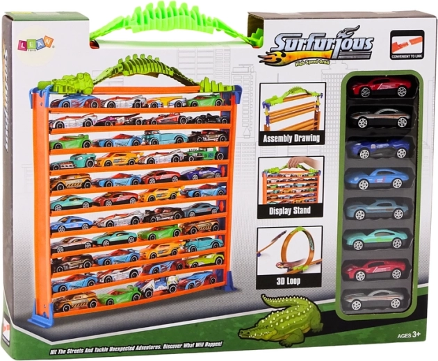 Setul distractiv 2în1 combină o pistă de curse cu buclă 360° și o parcare etajată pe mai multe niveluri într-un singur produs. Datorită asamblării ușoare și mânerului practic pentru transport, copiii se vor bucura atât de curse pline de acțiune, cât și de parcare ordonată. Include 8 mașinuțe metalice, 11 niveluri de parcare și o combinație de culori expresivă pentru atractivitate maximă.