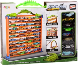 Set universal pentru micii pasionați de mașini: dintr-o singură asamblare poți crea atât o pistă de curse cu loop 360°, cât și un garaj-parcare pe mai multe niveluri. Asamblare ușoară, mâner stabil pentru transport și 8 mașinuțe diferite pentru distracție imediată. Culorile portocaliu, verde și albastru atrag atenția și stimulează jocul creativ.