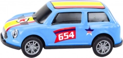 Această colecție variată de 12 mini mașinuțe aduce copiilor ore de creativitate și distracție de curse. Datorită mecanismului cu inerție, este suficient să întinzi ușor mașinuța pe podea și să o lași – pornește singură înainte. Culorile și imprimeurile diverse stimulează imaginația și invită la inventarea propriilor povești și curse.