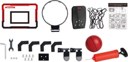 - panou, coș (inel), plasă, minge de baschet, pompă, contor de scor, agățătoare/șuruburi, ambalaj original