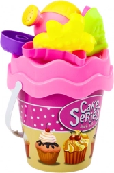 Descoperă setul fermecător pentru nisip cu motiv de dulciuri, care va înviora orice plajă sau groapă cu nisip. Găleata roz cu sită pe capac facilitează separarea nisipului de apă, stropitoarea colorată ajută la umezirea nisipului pentru o modelare mai bună, iar lopățica practică simplifică săpatul și umplerea. Patru forme în culori vesele invită la crearea de înghețate, biscuiți și alte delicii de nisip.