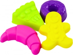 Patru forme intens colorate, cu forme precum donut, turtă dulce sau croissant, transformă groapa cu nisip într-o brutărie plină de imaginație.