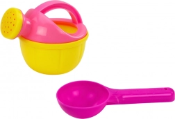 Stropitoarea colorată ușurează umezirea nisipului, iar lopățica compactă se potrivește perfect în mâna copilului pentru săpat și transportat.