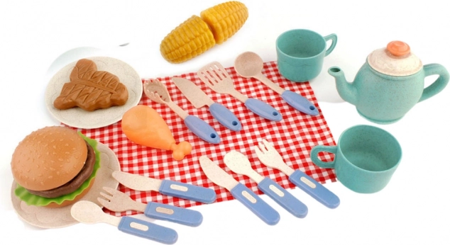 Acest set colorat include multe accesorii, precum instrumente de grătar, vase și imitații de alimente care asigură ore de distracție. Copiii se pot implica în rolul de bucătari adevărați și pot pregăti "deliciile" lor favorite chiar pe "grătar".