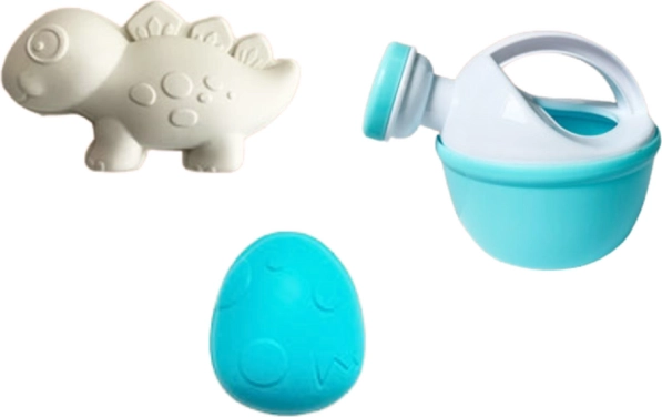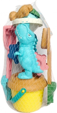 Setul include și găletușă, formițe, lopățică și greblă cu motiv jucăuș de dinozaur. Setul respectă standardele CE și EN71, astfel că vă puteți baza pe siguranță la utilizarea zilnică, pe plajă și în nisipar.