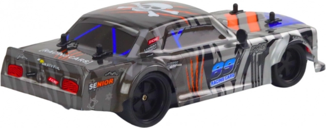 Această mașină sport RC gri este proiectată pentru condus dinamic și control facil. Datorită telecomenzii ergonomice tip pistol cu volan și frecvenței de 2,4 GHz, modelul răspunde rapid și precis, așa că se vor bucura atât începătorii, cât și avansații. Detaliile atent realizate și grafica de curse îl fac un model atrăgător pentru orice colecție.
