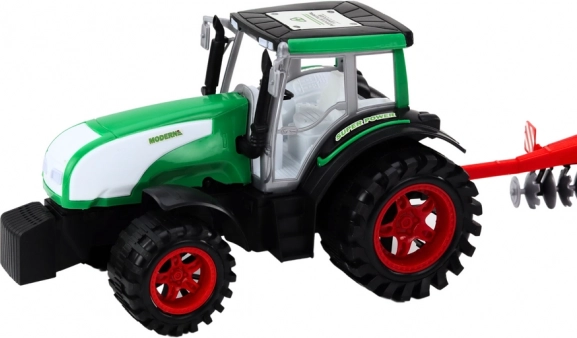 Acest tractor este proiectat în culori moderne verde-negru și se remarcă prin detalii realiste care vor încânta orice copil.