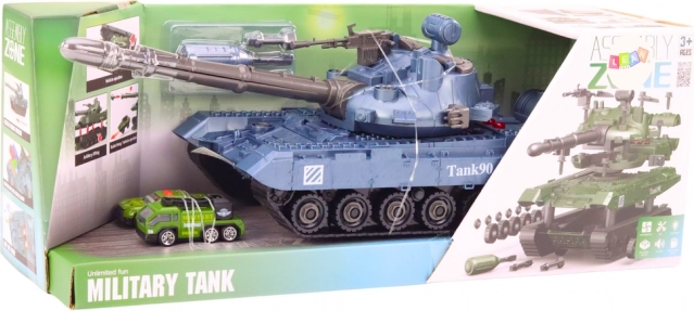 Setul include unelte care permit demontarea și asamblarea tancului, sprijinind abilitățile și îndemânarea copiilor.