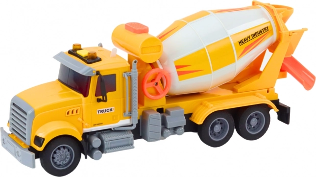 Această betonieră galbenă cu părți mobile și angrenajul de frecare este cea mai bună alegere pentru orice tânăr iubitor de construcții.