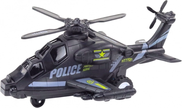 Elicopterul de poliție este echipat cu propulsie prin frecare - este suficient să-l împingi înainte și va parcurge singur distanțe lungi, simulând zboruri și aterizări realiste. În plus, luminile intermitente aduc jocului un plus de realism fiecărei acțiuni de poliție. Efectele sonore încorporate, active în timpul jocului, fac fiecare misiune și mai palpitantă. Construcția solidă din materiale durabile asigură ore lungi de joc în siguranță, iar mecanismul simplu de propulsie prin frecare este ideal pentru mâini mici.