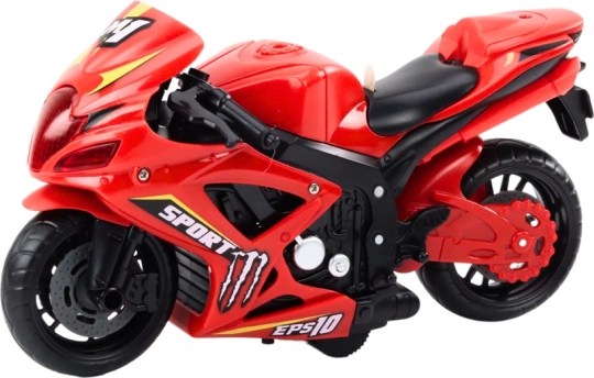 Motocicleta noastră sport cu transmisie prin frecare nu este doar o jucărie, ci și un instrument pentru dezvoltarea imaginației și a coordonării motorii a copilului dumneavoastră. Efectele luminoase și sonore fac distracția mai realistă și mai captivantă.