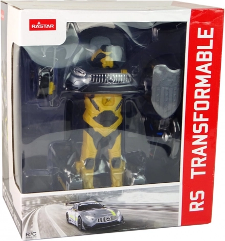 Descoperă distracția plină de acțiune cu silueta unei mașini de curse și un erou într-o singură jucărie. Detalii autentice Mercedes‑AMG GT3 în gri cu accente galbene, aripă spate mare și numere de concurs îi vor cuceri pe micii și marii fani ai motorsportului. Printr-o singură apăsare, modelul se transformă într-un robot galben cu scut și secure.