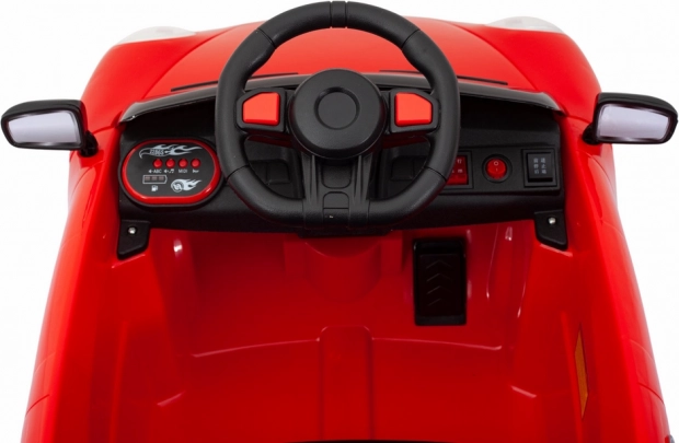 Liniile dinamice, vopseaua roșie și detalii precum farurile realiste, grila și oglinzile laterale îl transformă într-o „mini” mașină sport atrăgătoare, care îi cucerește pe copii pe loc.