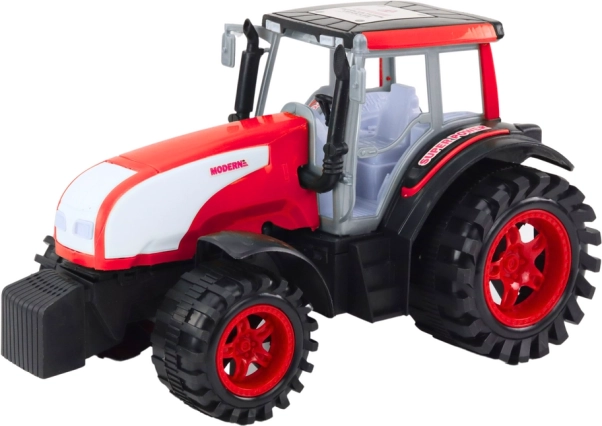 Acest tractor roșu de fermă reproduce fidel utilajele agricole reale și îi motivează pe copii la joc creativ. După întoarcere sau mișcare, pornește automat înainte, astfel încât își pot crea ușor propriile povești de la fermă sau de pe șantier. Datorită construcției robuste, rezistă utilizării frecvente acasă și în grădină.