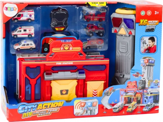 Acest set multifuncțional transformă camera copilului într-un veritabil centru al serviciilor de salvare. Baza include segmente de stație de pompieri și spital, un turn pe acoperiș cu platformă de aterizare și accesorii pentru coordonarea acțiunilor. Vehiculele pot coborî pe rampa dinamică, în timp ce spațiul interior servește drept cutie de depozitare. Datorită mânerului, întreaga stație poate fi transportată ușor ca o valiză.