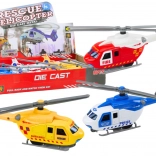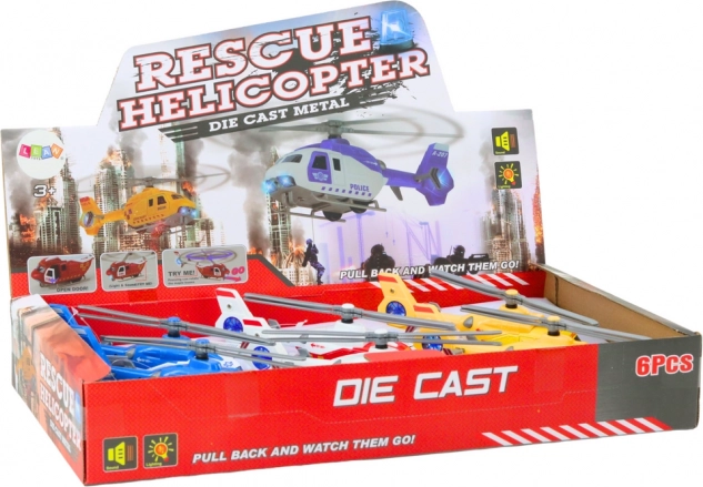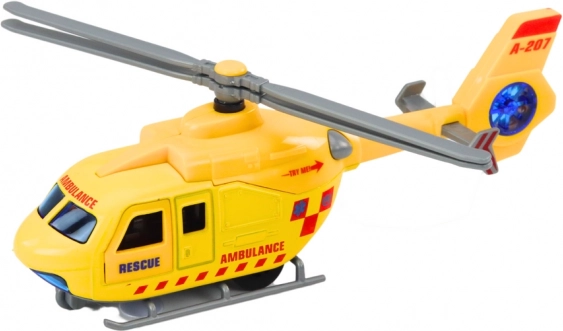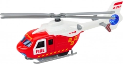 Acest elicopter metalic, realizat cu atenție la detalii, îi va încânta pe toți micii fani ai serviciilor de intervenție. Datorită efectelor luminoase și sonore, imită fidel acțiunile poliției, pompierilor și serviciului de salvare. Ușile deschizibile permit introducerea figurinelor și accesoriilor, extinzând scenariile de joc.