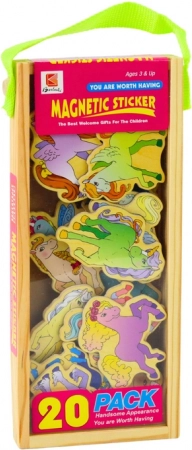 Setul include 20 de magneți cu unicorni colorați, pe care copiii îi pot folosi pe frigider sau pe o tablă magnetică pentru a crea propriile scenarii fermecate. Această formă interactivă de distracție dezvoltă creativitatea și, în același timp, abilitățile manuale și perceptive ale copilului, deoarece manipularea magneților necesită precizie și capacități de coordonare.