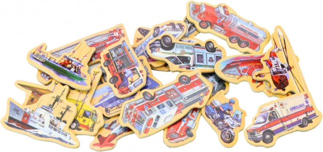 Setul conține 20 de magneți din lemn, fiecare cu un design unic, incluzând vehicule, nave și avioane, care ajută copiii să își dezvolte cunoștințele despre diversele mijloace de transport.