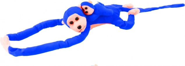 Această maimuțică adorabilă din pluș, cu puiul ei, în nuanță intensă de albastru, este un companion ideal pentru copii. Are un design moale și catifelat, membre lungi cu benzi cu scai pentru prindere de mână sau pătuț și o dimensiune de 70 cm, perfectă pentru îmbrățișat și joacă.