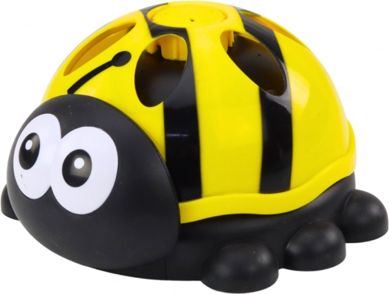 Combinația de culori galben și negru, cu ochi mari desenați, asigură că buburuza atrage atenția fiecărui copil.