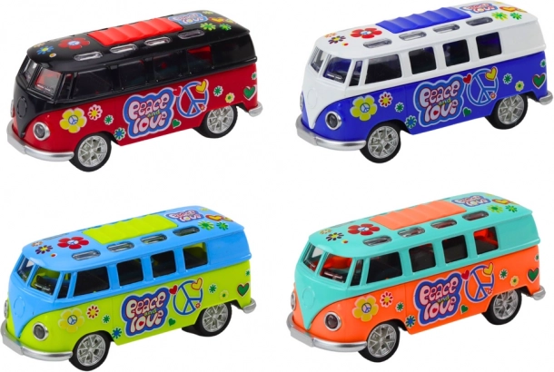 Autobuzul Camper de metal la scară 1:32 nu este doar un model captivant pentru copii și colecționari, ci oferă și o gamă largă de funcții care sporesc plăcerea jocului. Stilizarea într-un camper clasic cu diverse autocolante îi conferă modelului un caracter unic.