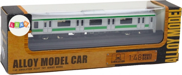 Acest model metalic de vagon la scara 1:48 impresionează prin execuția precisă, proporțiile fidele și aspectul argintiu curat cu detalii verzi. Ferestrele, ușile și șasiul atent realizate subliniază aspectul realist, datorită căruia se evidențiază perfect în vitrină sau pe birou.