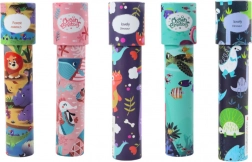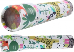 Este suficient să priviți prin lentilă, iar totul din jur se transformă în imagini colorate. Fiecare rotire a kaleidoscopului creează noi modele colorate, simetrice, care fascinează și stimulează curiozitatea și concentrarea. Tubul alb cu motiv cu animăluțe va fi îndrăgit pe loc de copii.