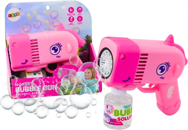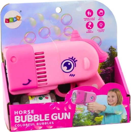 Pistolul amuzant de făcut baloane de săpun în formă de dinozaur drăgălaș, de culoare roz, va încânta orice copil. Datorită dimensiunilor compacte, este ideal pentru plimbări și excursii și este foarte ușor de folosit – este suficient să apeși butonul și vor zbura o mulțime de balonașe colorate. Soluția inclusă se înșurubează direct în pistol, astfel încât nu se varsă nimic. Jucăria este realizată din materiale durabile și netoxice, are efecte luminoase LED, respectă CE și EN71 și este destinată copiilor de la 3 ani.