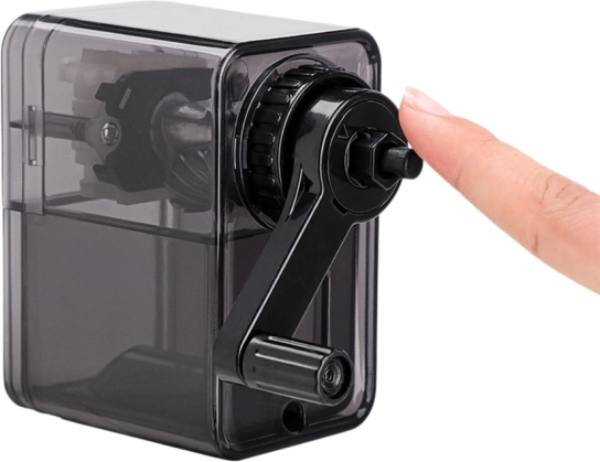 Ascuțitoarea cu manivelă, stilată și funcțională, este ideală pentru școală, birou și spațiul de lucru de acasă. Mecanismul cu manivelă accelerează ascuțirea și asigură o mină uniform ascuțită fără efort – sunt suficiente câteva rotații și creionul este gata de lucru.