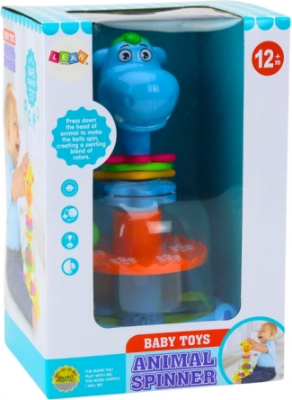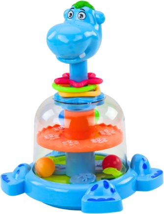 Hipopotamul interactiv încântă prin culori vii și funcționare simplă. Prin apăsarea căpșorului, rotița din burtică se pune în mișcare, iar 4 bile colorate încep să se deplaseze. Copiii urmăresc cum bilele sar și își schimbă direcția, stimulându-le curiozitatea și capacitatea de concentrare.