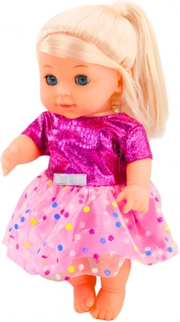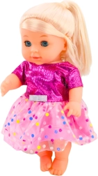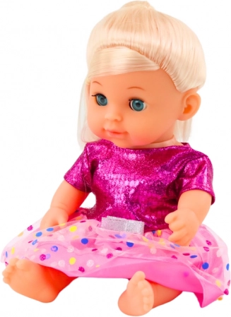 Această păpușă fermecătoare, cu păr blond și ochi albaștri, este ideală pentru imitarea îngrijirii unui bebeluș. Datorită mânuțelor, piciorușelor și căpșorului mobile o poți așeza sau întinde cu ușurință, iar funcția realistă de făcut pipi după ce bea din biberon adaugă autenticitate jocului.