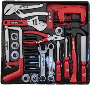 Setul de unelte din plastic este jucăria perfectă pentru orice mic meșter. Această jucărie populară le permite copiilor să se joace de-a reparatorii și să ajute tatăl lor la reparații minore. Setul conține diferite tipuri de unelte, oferind copiilor multe oportunități de a-și dezvolta imaginația și îndemânarea. Dimensiunile pachetului sunt 36 x 33 x 4 cm, ceea ce asigură o depozitare ușoară.