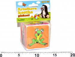 Cub amuzant care piuie pentru cei mai mici din colecția cu personajele KRTEČEK și prietenii săi, încântă prin culori vii și material moale, sigur. Fiecare față are altă culoare și afișează eroi îndrăgiți, iar la apăsare cubul emite un sunet de piuit, care susține percepția senzorială și atenția bebelușului.