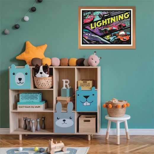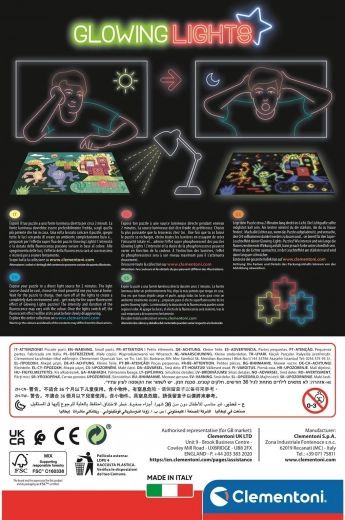 Puzzle pentru copii fluorescente, care luminează în întuneric. Datorită finisajului special cu vopsea fluorescentă, imaginea luminează în trei culori în întuneric. Dimensiunea puzzle-ului asamblat este de aproximativ 33,5 x 23,5 cm