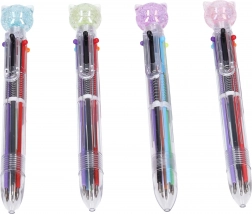 Acest pix stilat cu motiv de pisică îmbină distracția cu funcționalitatea. Datorită celor șase culori de cerneală (negru, mov, albastru, galben, portocaliu, roșu) poți diferenția ușor notițe, sarcini și evidențieri în caiete sau agende. Mecanismul practic de comutare permite schimbarea rapidă fără a schimba instrumentul de scris.