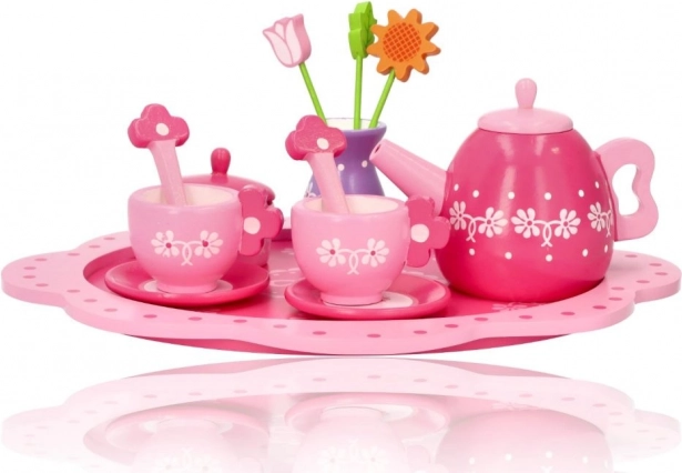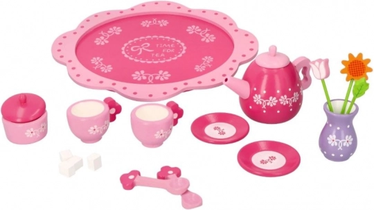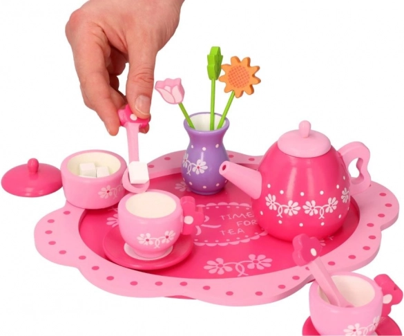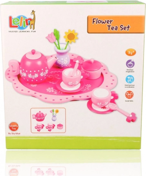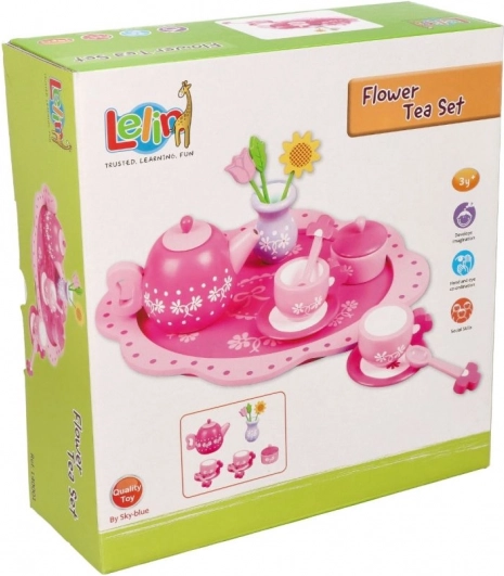 Acest încântător set de ceai din lemn, în tonuri delicate de roz și cu detalii florale, este ideal pentru petrecerile de ceai ale copiilor. Datorită lemnului rezistent, suportă bine jocul zilnic și, în același timp, dezvoltă abilități importante.