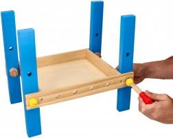 Înșurubarea, bătutul cu ciocanul și asamblarea pieselor dezvoltă motricitatea și imaginația. Elementele colorate invită la joacă îndelungată și plină de sens.