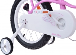 ROYALBABY Little Swan 14" este o bicicletă pentru copii fermecătoare, în combinație roz-alb, concepută pentru primele plimbări, cu accent maxim pe siguranță, confort și învățare ușoară. Cadrul ușor din oțel facilitează urcarea și coborârea, iar anvelopele înalte cu profil antiderapant asigură contact sigur cu suprafața.
