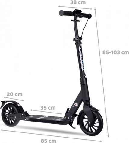 Bucurați-vă de o plimbare confortabilă prin oraș cu trotineta mare pliabilă pentru copii și adulți. Oferă un sistem de frânare cu două camere, suspensie față, roți mari din PU de 200 mm și pliare rapidă cu o singură mână. Datorită ghidonului cu înălțime reglabilă 85–103 cm, construcției solide din aluminiu și capacității de încărcare de până la 100 kg, este ideală pentru naveta zilnică și timpul liber.