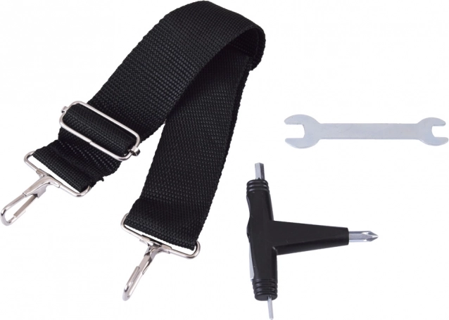 - Curea de transport (lungime 70 cm), chei imbus, cheie fixă, cric