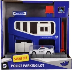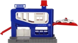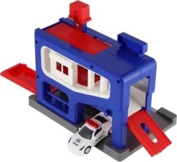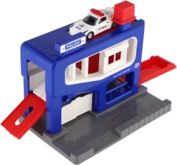 Setul include o garaj cu detalii minunate și o mașinuță. Copiii se pot juca de-a polițiștii și infractorii, făcând curse și parcând mașinuța în garaj. Garajul este conceput pentru copiii de peste 3 ani, iar dimensiunile sale compacte permit o amplasare ușoară în cameră sau pe masă.