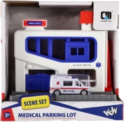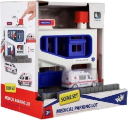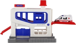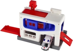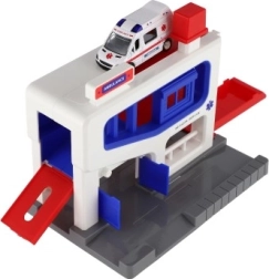 Acest garaj de parcare este setul de joacă perfect pentru copiii cu vârsta de la 3 ani. Setul include un garaj din plastic și o mașinuță ambulanță, ideal pentru joacă și învățare. Copiii își pot dezvolta astfel abilitățile motorii și înțelegerea pentru munca de salvare.
