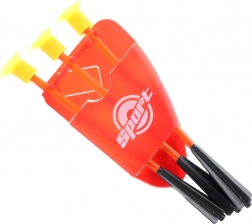 Cele trei săgeți cu ventuze moi se fixează în siguranță pe suprafețe netede și protejează împrejurimile. Ideale pentru joacă acasă și afară.
